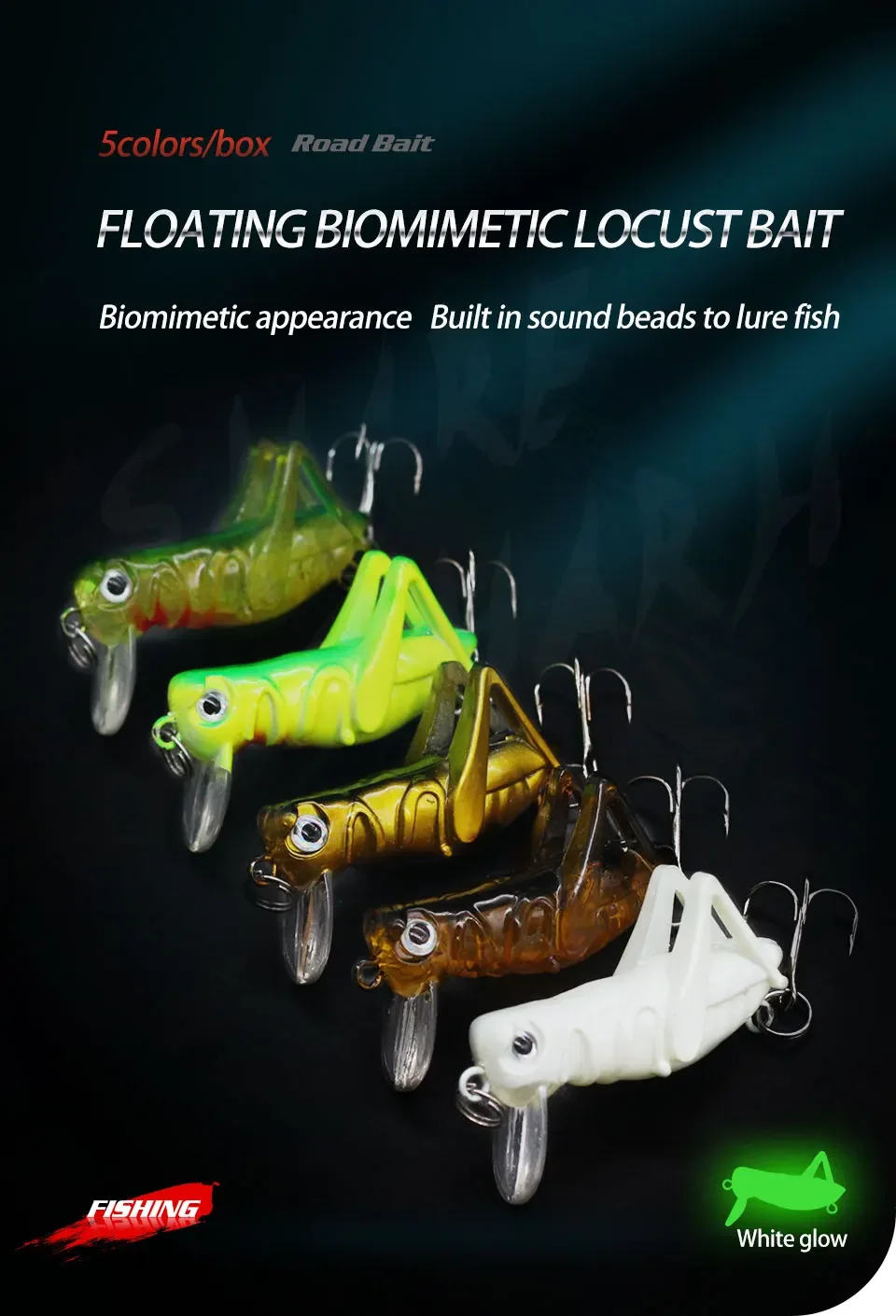 5Pcs Grasshopper Fishing Lure Hard Plastic Artificial Insect Baits Locust Cricket Crankbaits Treble Hook Flying Fishing Lure SetAvailability: 10 in stock