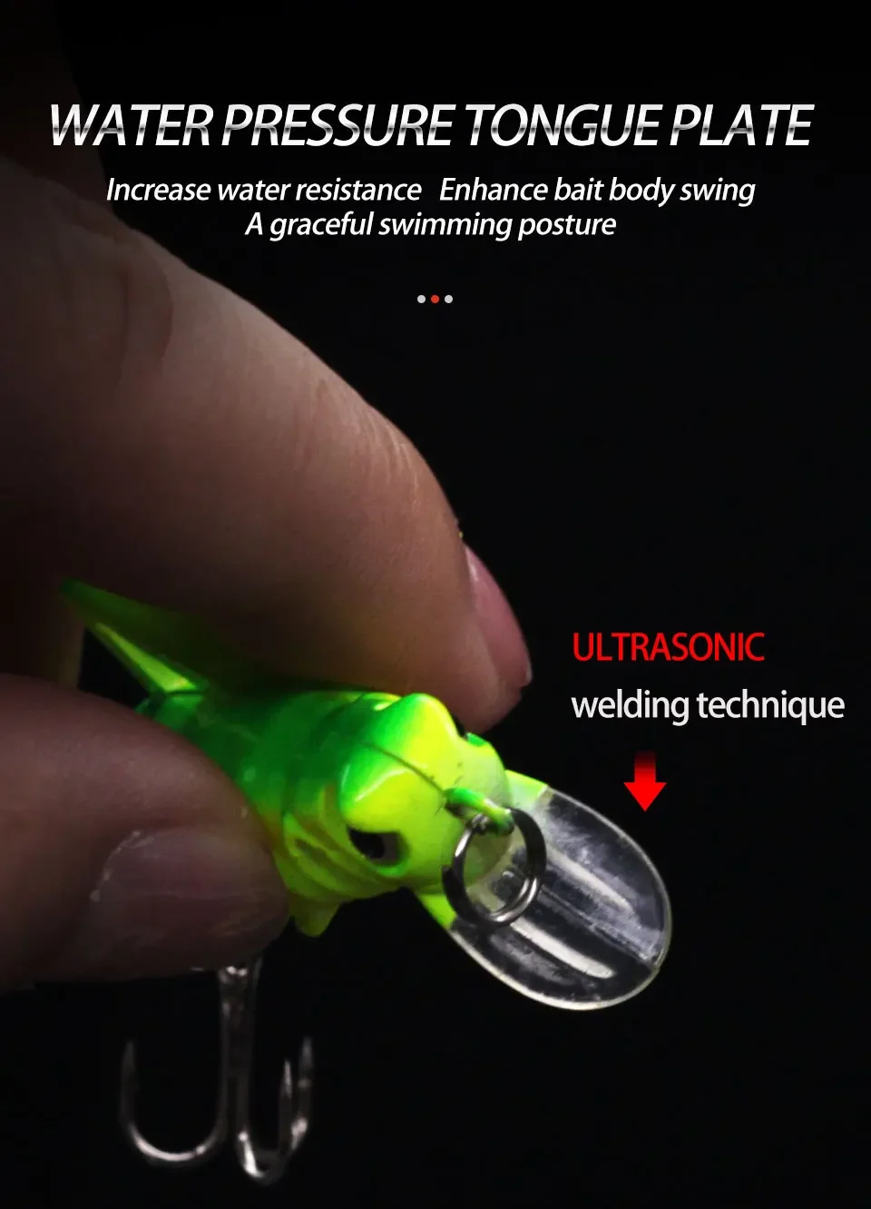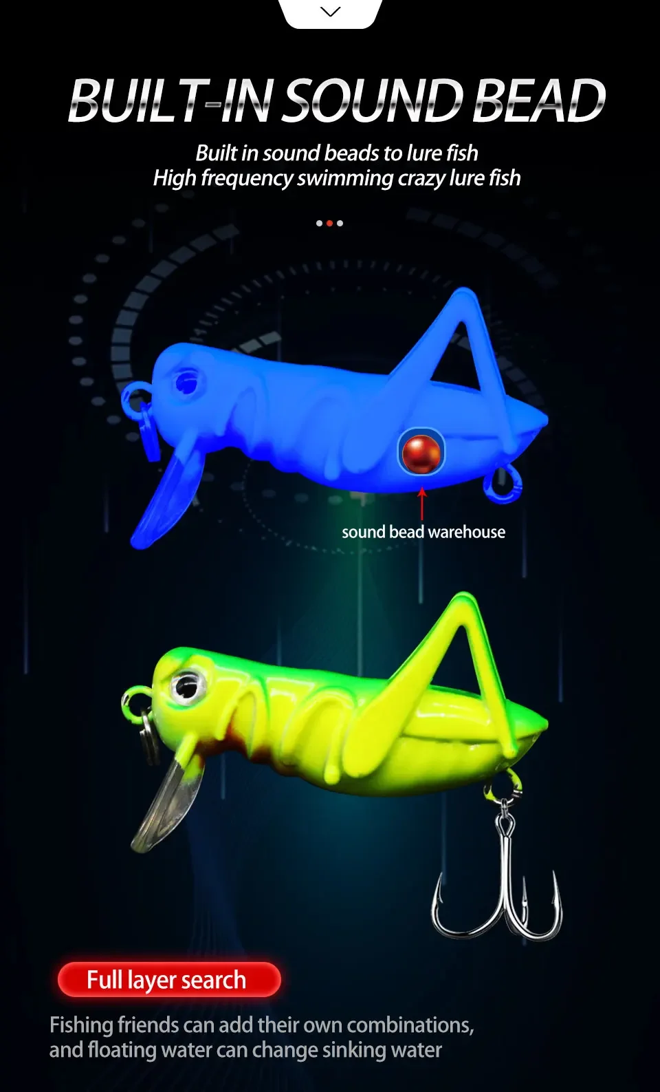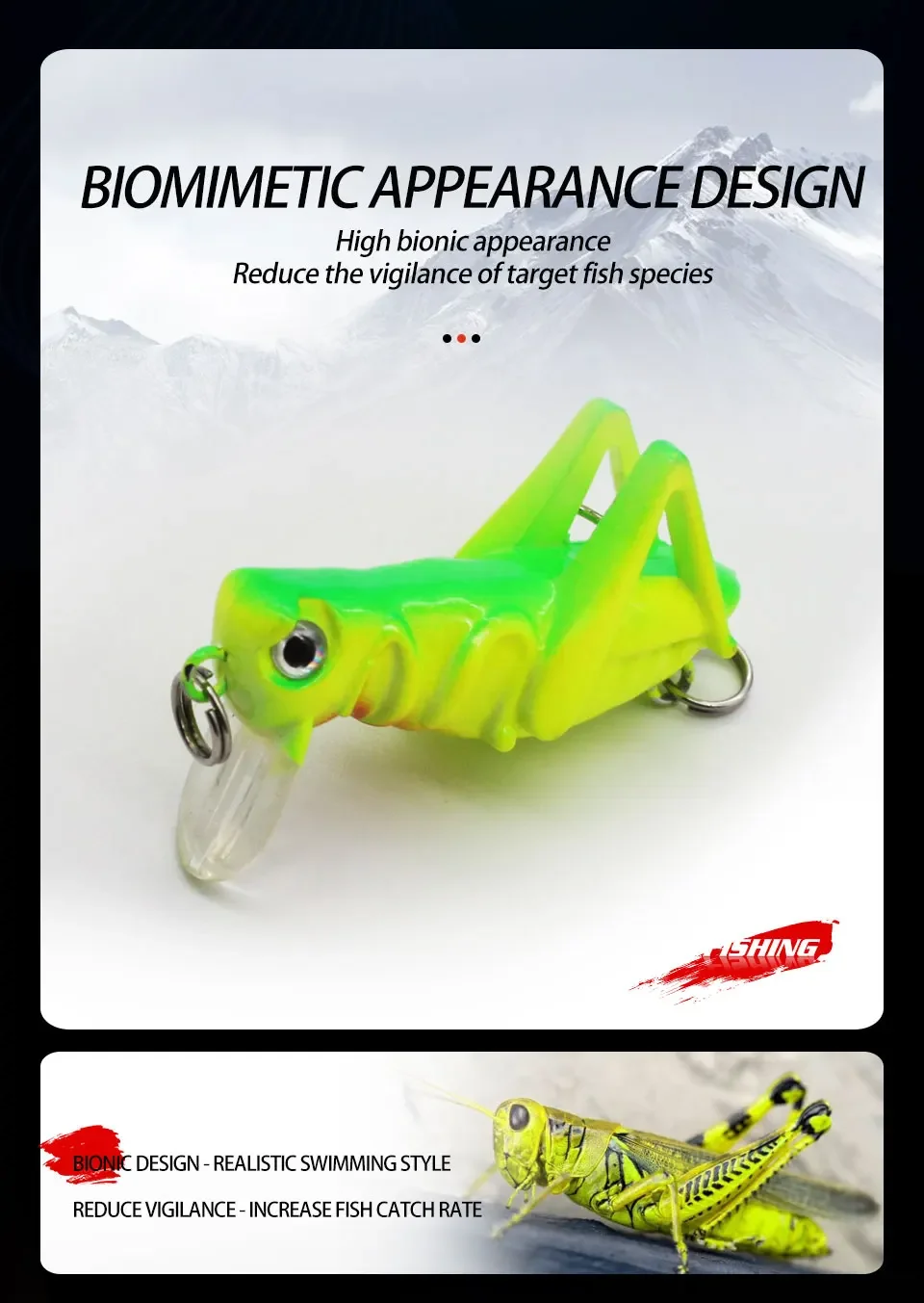 Upgrade your fishing game with this 5Pcs Grasshopper Fishing Lure Set! Designed to mimic realistic locusts and crickets, these hard plastic artificial baits feature treble hooks for secure catches and a crankbait action that attracts predatory fish like bass, trout, and panfish. Perfect for freshwater and inshore fishing, these flying fishing lures create lifelike movements to trigger strikes. Durable, vibrant, and ready to boost your tackle box—ideal for topwater and shallow water fishing. A must-have for anglers seeking high-performance bass lures and insect bait alternatives!